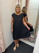 Elasticated waist barrel leg jeans with 2 side pockets.