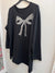 Sequin bow decoration on the front of top with long sleeves and pockets.