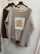 Supersoft hooded sweatshirt top with leopard print trim on the drawstring, hemline and inside the hood.