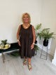 Fab Co-Ord set with barrel leg bottoms which have an elasticated waist and pockets. the top has button decoration on the sleeves.