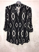 NON IRONING top with grandad style neckline and button back sleeves in a paisley pattern .