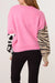 Supersoft fluffy jumper in vibrant colours with panels of animal print pattern.