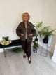Fab Co-Ord set with barrel leg bottoms which have an elasticated waist and pockets. the top has button decoration on the sleeves.