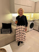 Stunning tie neckline dress, it has sheer sleeves with decoration in a contrasting colour.