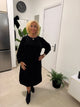 Fab slinky fabric V Neck dress with long sleeves and gathering up the front.