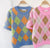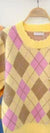 Fabulous fine knit top with short sleeves in an argyle pattern.