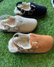 Fab faux suede inspired slipper/shoes with embroidered trim.