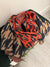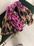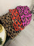 Vibrant coloured wool mix knitted scarf in leopard print pattern.