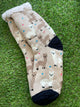 Super warm knitted faux fur lined slipper socks with grips on the sole.