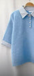 Lovely fine knit top with part front fastening, short sleeves with striped trim and collar.