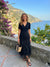 Absolutely beautiful this short sleeved dress has a fine knit bodice with V Neckline and long layered skirt.