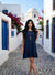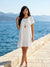 Cap sleeve frilled hemline dress.