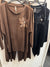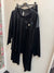 Velour feel lounge suit with round neck top that has a an embroidered flower on the front. with cuffed  sleeves. Elasticated waist wide leg bottoms.