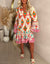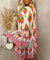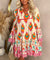 Stunning smock style dress with tie neckline and fluted sleeves and tie belt at the back.