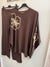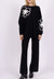 Premium fine knit Co-Ord set, hi-lo style top with long sleeves and flower on the front and sleeves.