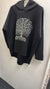 Hi-lo style hooded sweatshirt with diamanté tree of life on the front.