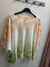 Fine knit top with print detail and 3/4 sleeves.